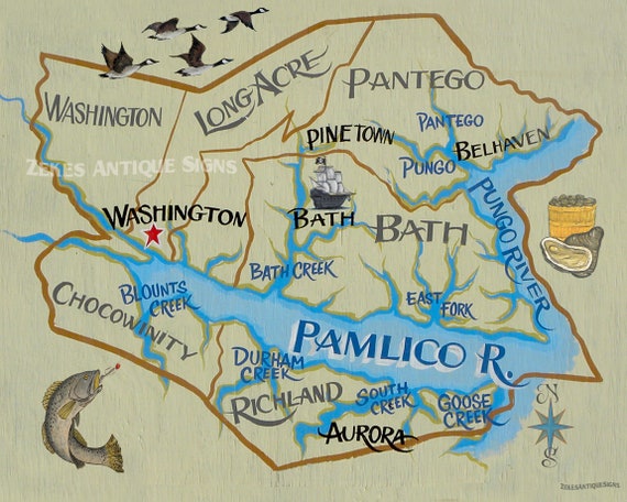 Beaufort County Nc Map Print North Carolina Art Nautical Etsy